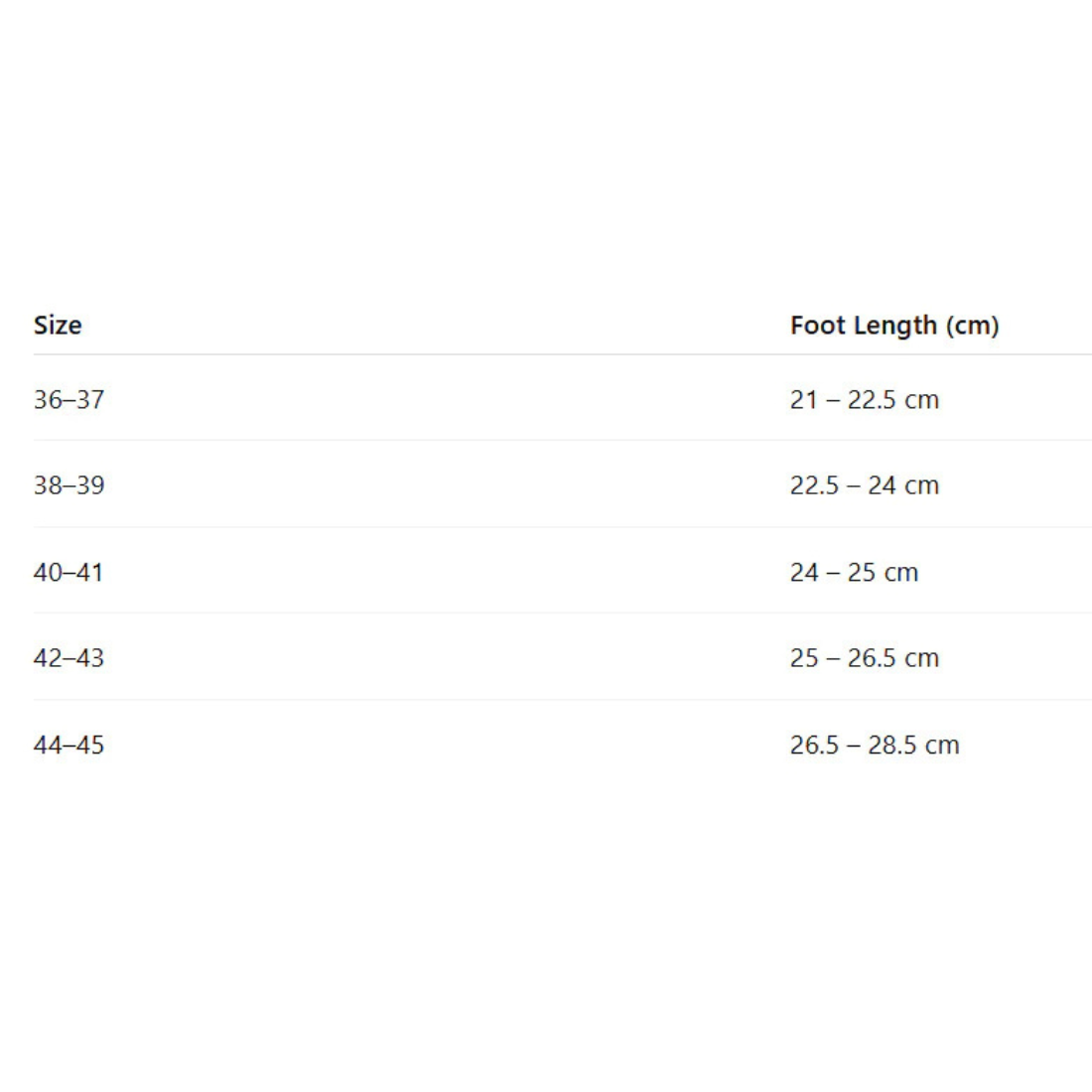 Size 44-45: foot length 26.5-28.5 cm.